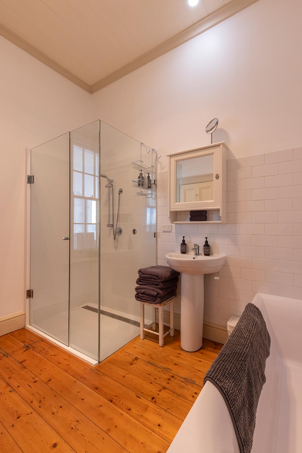 There are two bathrooms, each with a shower. The larger bathroom also features a deep bath for soaking. Our towels are large and soft, and we pay attention to details, such as providing individual dental flossettes, cotton buds, and toiletries.