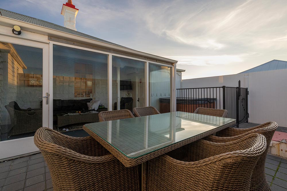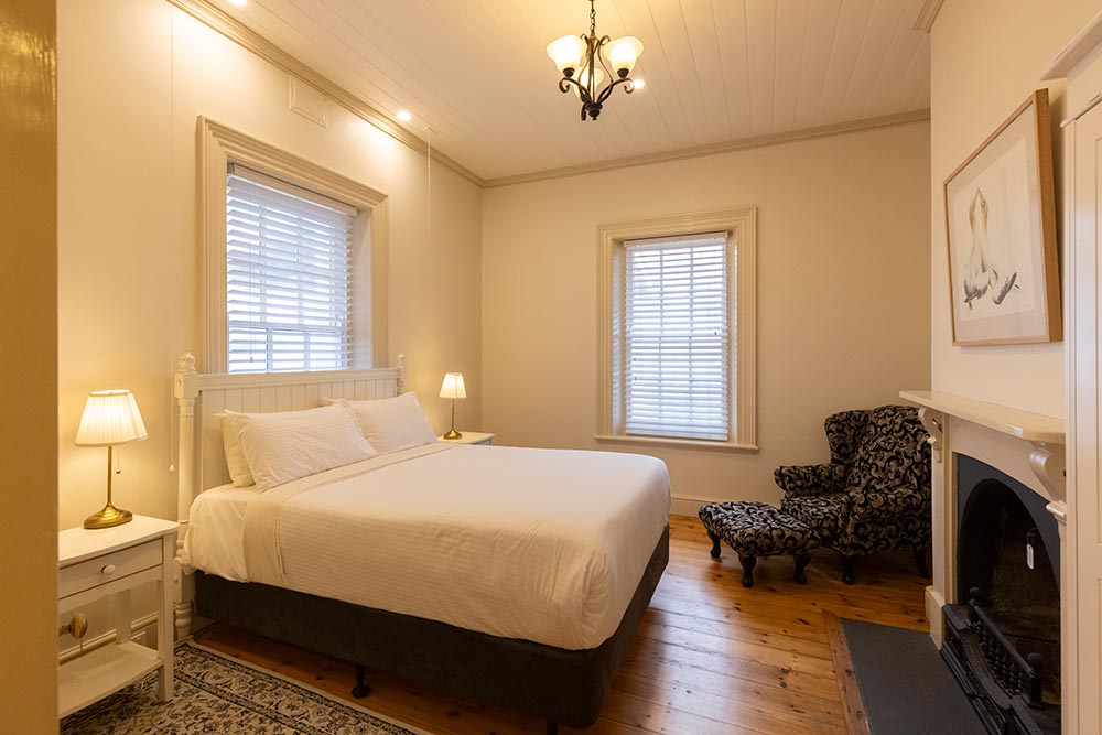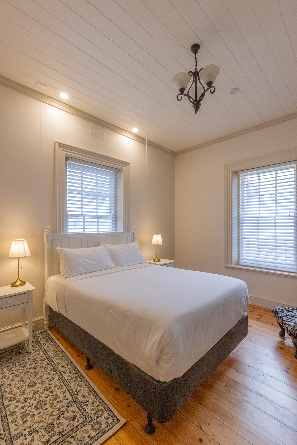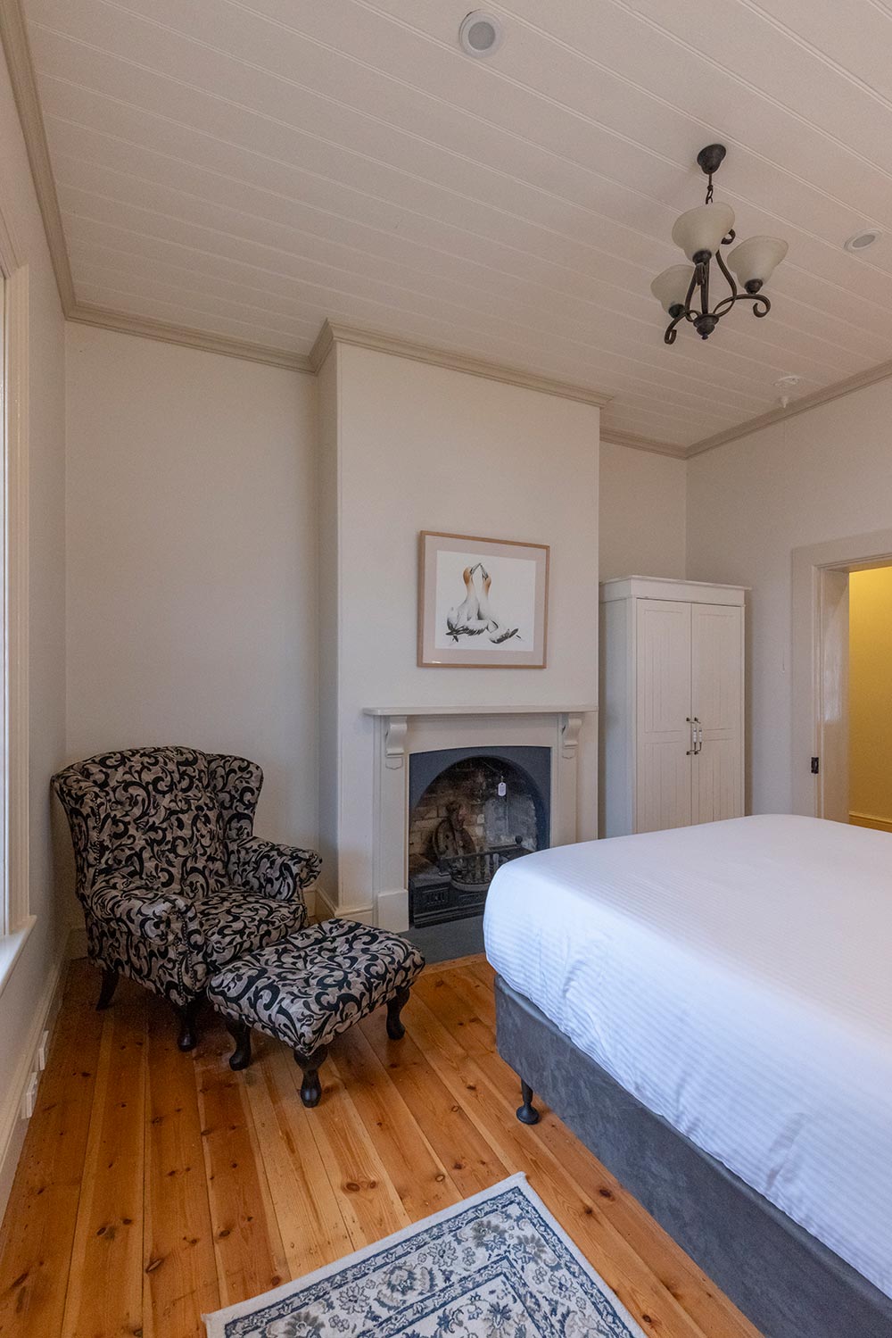 The Head Lighthouse Keeper’s Cottage has two beautifully appointed bedrooms, each with a queen-sized bed and ample clothing storage. The elegant bedroom furniture complements the cottage’s atmosphere.
