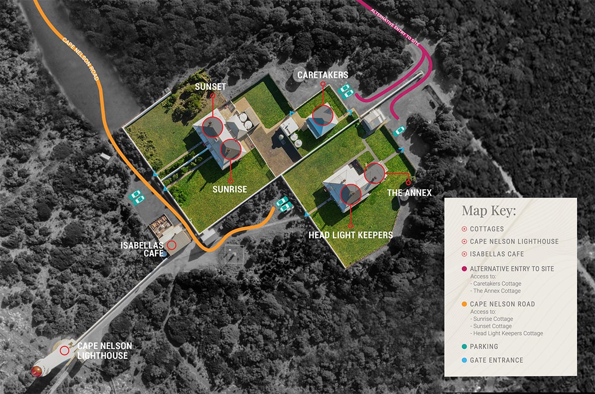 Upon arrival at Cape Nelson Lighthouse Cottages, please use the provided link to download detailed information about locating your cottage and parking instructions.